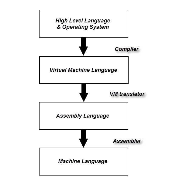 >>고수준 언어 → 저수준 언어(어셈블리어, 기계어)