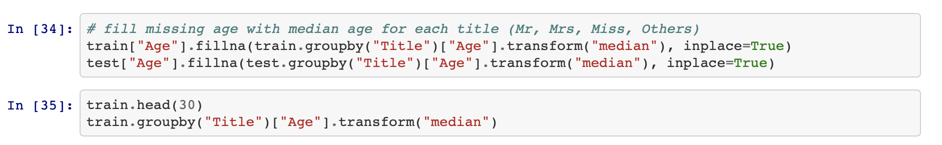 4.4.1 some age is missing. Let's use Title's median age for missing Age