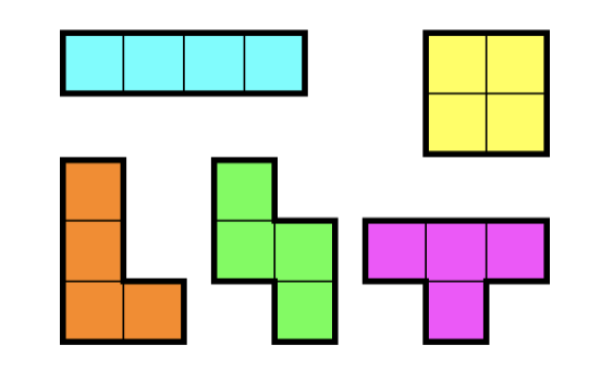 폴리오미노란 크기가 1×1인 정사각형을 여러 개 이어서 붙인 도형이며, 다음과 같은 조건을 만족해야 한다. 정사각형은 서로 겹치면 안 된다. 도형은 모두 연결되어 있어야 한다. 정사각형의 변끼리 연결되어 있어야 한다. 즉, 꼭짓점과 꼭짓점만 맞닿아 있으면 안 된다. 정사각형 4개를 이어 붙인 폴리오미노는 테트로미노라고 하며, 다음과 같은 5가지가 있다. 아름이는 크기가 N×M인 종이 위에 테트로미노 하나를 놓으려고 한다. 종이는 1×1 크기의 칸으로 나누