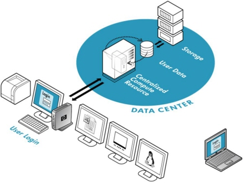 데스크톱 가상화 (VDI)는 데이터 센터의 서버에서 운영되는 가상의 PC환경을 의미합니다. 가상의 데스크톱을 마치 로컬 시스템인 것처럼 활용할 수 있으며, 모든 작업의 프로세싱과 저장은 센터에 위치한 서버에서 이루어 집니다. VDI환경에서는 언제 어디서든 네트워크가 가능하다면 서버에 접속하여 자신만의 PC환경을 구동시킬 수 있습니다.