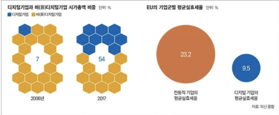 디지털 기업의 조세회피 성향과 낮은 세율은 문제가 되지만 디지털세를 도입할 경우 이중과세 문제 등 여러 부작용을 낳을 수 있다. 디지털세란 글로벌 IT기업들이 온라인 거래를 통해 얻는 수익에 대해 자국에 납부하는 것과 별개로 실제로 서비스가 제공되고 소비되는 국가에 추가로 납부하는 조세다. 실질을 반영하지 못한 법인세에 대한 새로운 국제규범이 정립되기 전까지 매출이 발생한 국가에서 매출액의 일정 비율을 법인세 대신 부과하는 것이다. 이미 자국에 법인세를 납부한 기업이 별도로 해외에 납부하는 것을 골자로 한 것이기 때문에 본질적으로 이중과세의 문제를 안고 있다.