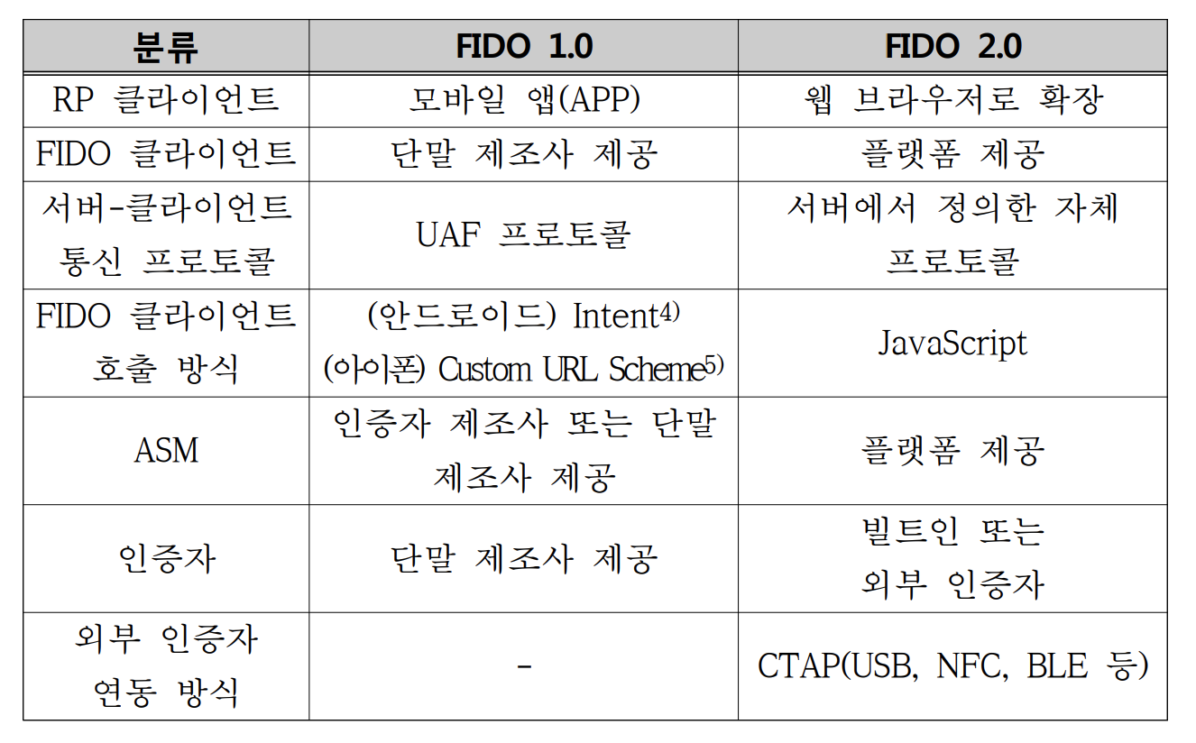 FIDO 1.0과 2.0 비교