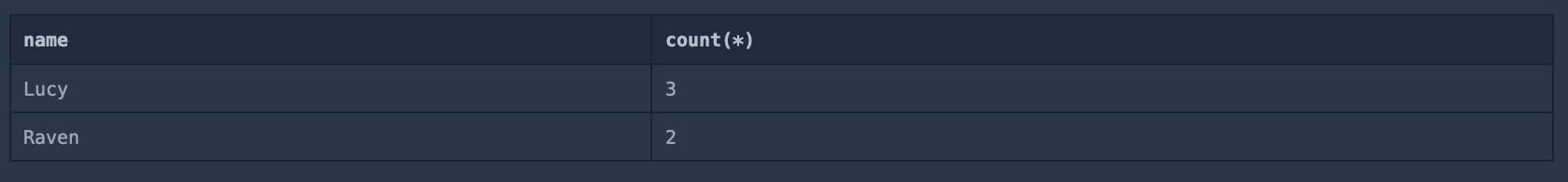 SELECT name, count(*)