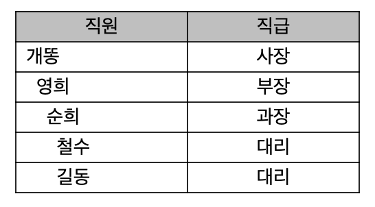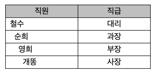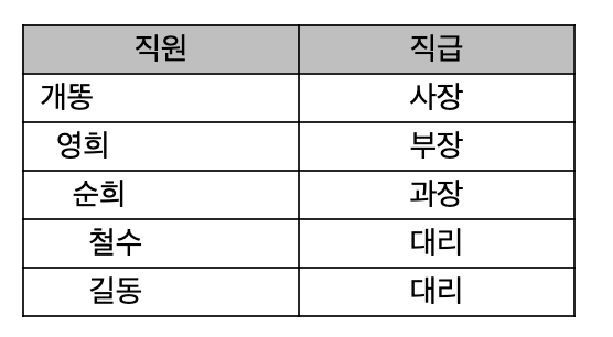 예를 들면, 아래와 같이 직원 테이블이 있다고 생각 하자.