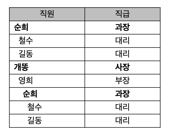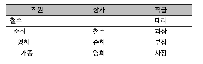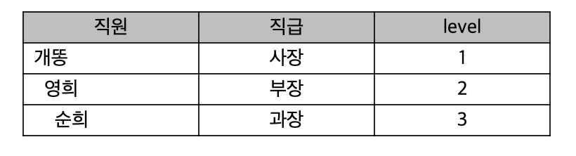 즉 계층 구조 내에서 각 행의 관계를 설정하는 것이다.