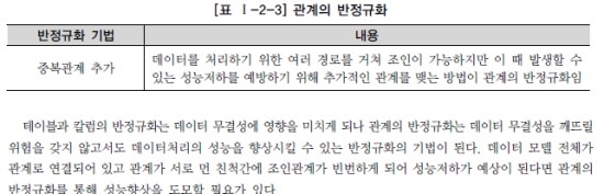 그러나 정규화만을 수행하면 엔터티의 갯수가 증가하고 관계가 많아져 일부 여러 개의 조인이 걸려야만 데이터를 가져오는 경우가 있다.