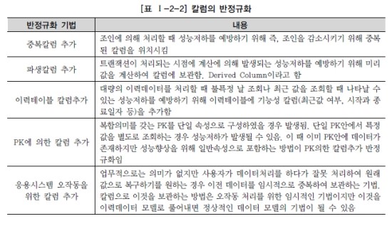 이러한 경우 업무적으로 조회에 대한 처리성능이 중요하다고 판단될 때 부분적으로 반정규화를 고려하게 되는 것이다. 정규화의 함수적 종속관계는 위반하지 않지만 데이터의 중복성을 증가시켜야만 데이터조회의 성능을 향상시키는 경우가 있다. 이러한 경우 반정규화를 통해서 성능을 향상시킬 수 있게 되는 것이다.