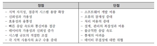 (원거리 또는 다른 서버에 접속하여 처리하므로 인해 발생되는 네트워크 부하 및 트랜잭션 집중에 따른 성능 저하의 원인을 분산된 데이터베이스 환경을 구축하므로 빠른 성능을 제공)