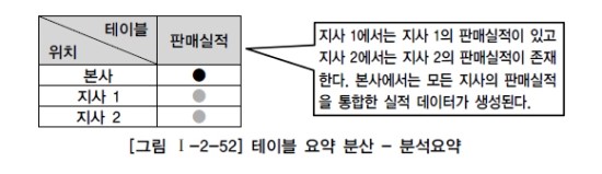 - 지사에 있는 데이터를 이용하여 본사에서 통합하여 요약 데이터 산정