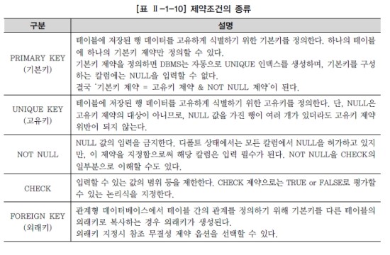 제약조건(CONSTRAINT) : 데이터의 무결성을 유지하기 위한 데이터베이스의 보편적인 방법