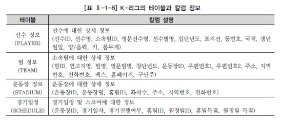 테이블 설명 : K-리그 선수들의 소속팀에 대한 정보를 가지고 있는 테이블