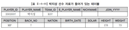 SELECT PLAYER_NAME 선수명, POSITION 위치, HEIGHT 키, WEIGHT 몸무게
