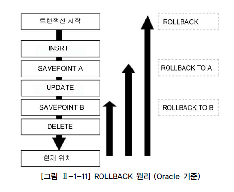 롤백(ROLLBACK) : 트랜잭션 시작 이전의 상태로 되돌리는 것