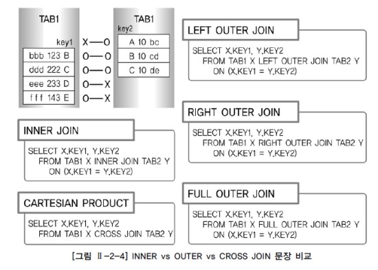 >>양쪽 테이블을 기준으로 키 값 조합이 NULL-A, B-B, C-C, D-NULL, E-NULL 인 5건이 출력