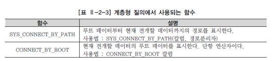 Orcle은 계층형 질의를 사용할 때 사용자 편의성을 제공하기 위해서 [표 Ⅱ-2-3]과 같은 함수 제공