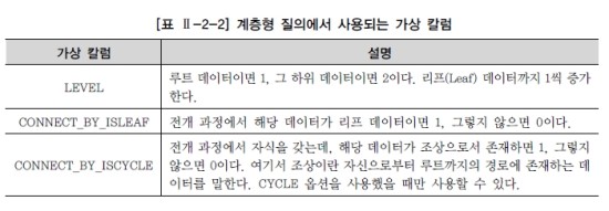Oracle은 계층형 질의를 지원하기 위해서 [그림 Ⅱ-2-7]과 같은 계층형 질의 구문을 제공