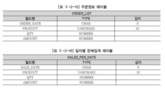 ② o_date(주문일자), o_prod(주문상품) 값을 저장할 변수를 선언하고, 신규로 입력된 데이터를 저장한다. : NEW는 신규로 입력된 레코드의 정보를 가지고 있는 구조체 : OLD는 수정, 삭제되기 전의 레코드를 가지고 있는 구조체 표 Ⅱ-2-17 참조