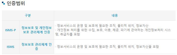 ISMS-P 인증은 ISMS 와 PIMS 두가지 인증이 합쳐져 있는 인증 입니다. 그렇기 때문에 개인정보+정보보호 두가지 항목을 전부 인증 범위로 보고 있습니다.