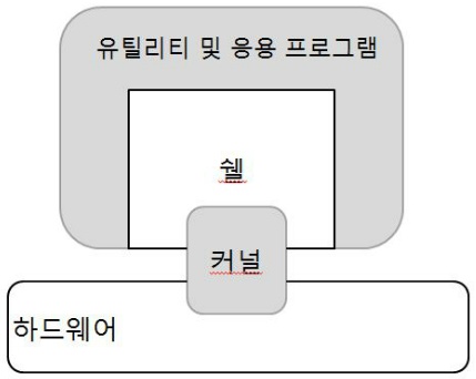 커널, 쉘 그리고 유틸리티 및 응용프로그램으로 나누어진다.